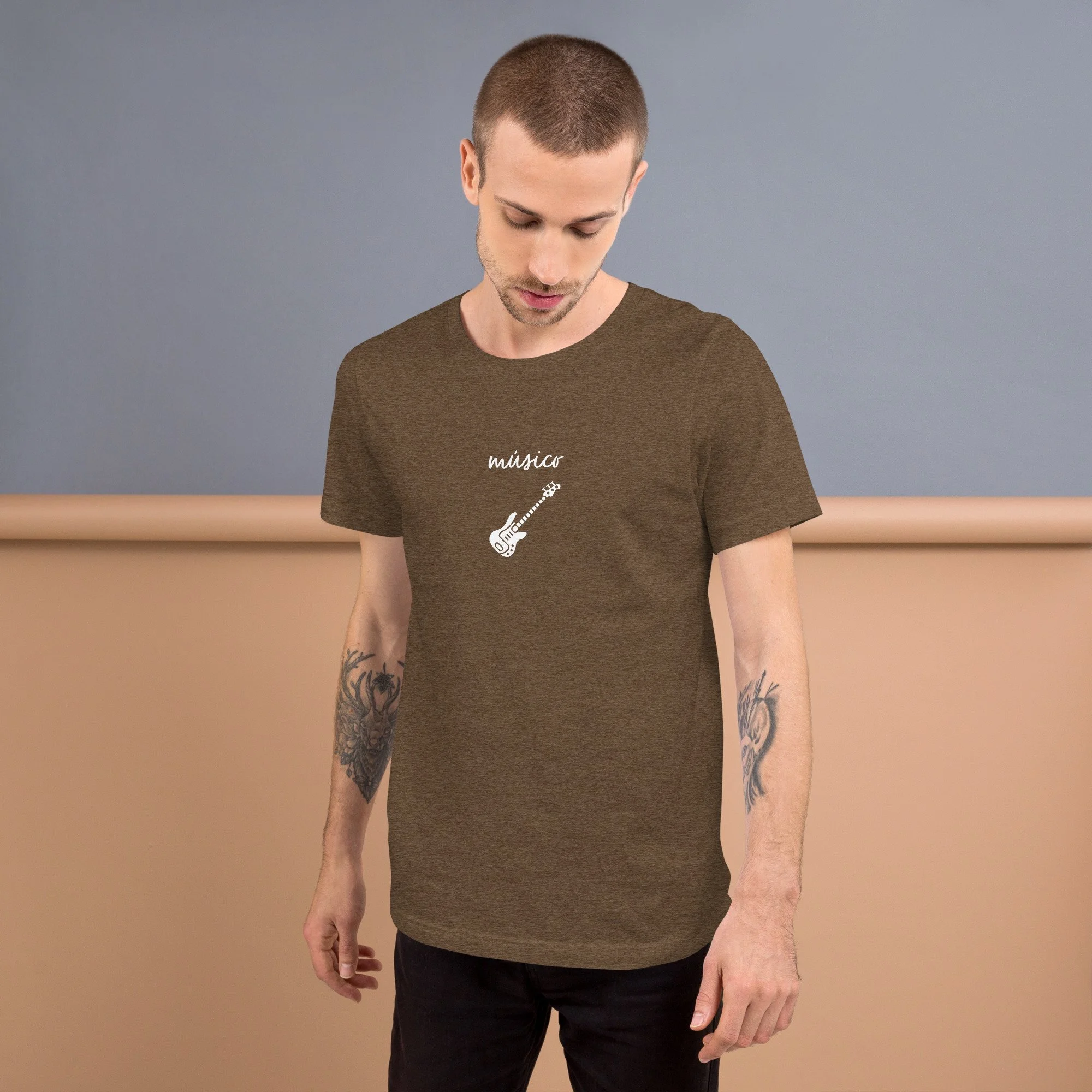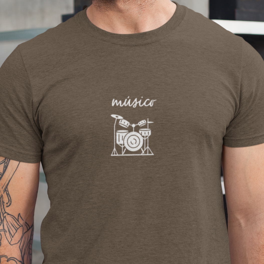 El diseño lleva la palabra “músico” junto a una partitura minimalista con notas musicales: un guiño para quienes ven la vida como una obra en constante creación.